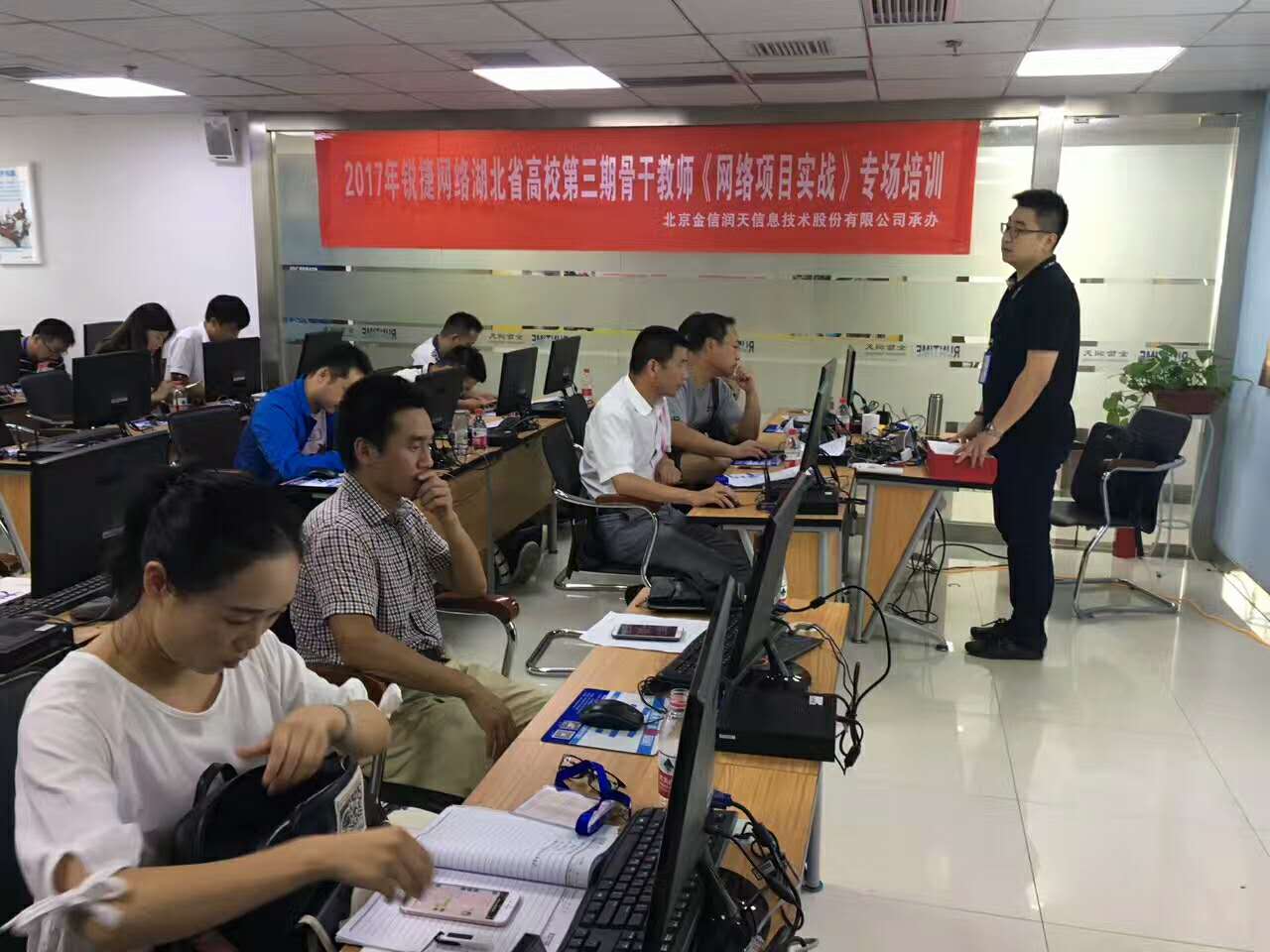 2017年7月11日—15日,金信润天武汉培训中心组织协办了本次暑期师资培训班,线上线下报名37人,正式参训31人。由锐捷原厂讲师任超老师全程实战授课,第一次展示锐捷教育云、实战云产品,深受参与老师们的一致好评。最后感谢一下我的团队:平原,全程负责老师的接待工作,部分院校合作协议的洽谈及签署;何丽,全程负责老师们的后勤工作,中餐、茶歇、水果的供应;还有李小萌、杜婷、敖少波、黄强...大家辛苦了!