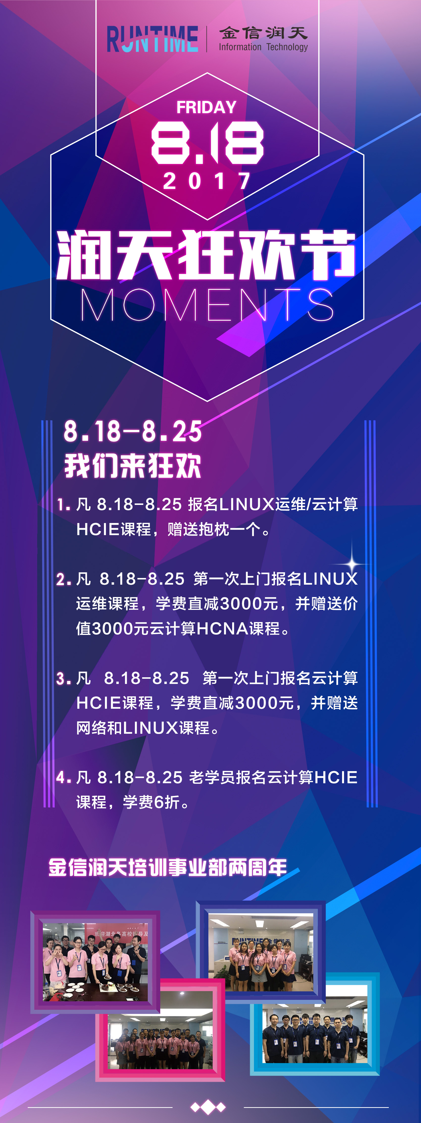 2.凡 8.18-8.25 第一次上门报名Linux运维课程,学费直减3000元,并赠送价值3000元云计算HCNA课程。