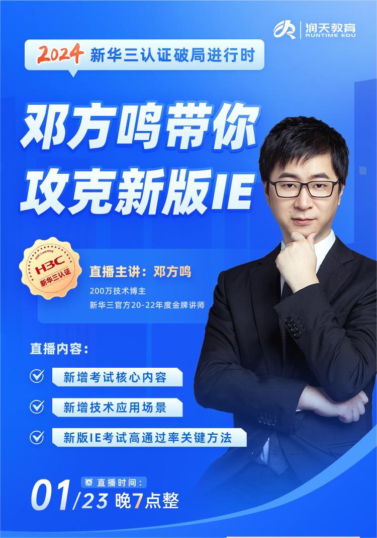 为了让大家更好地掌握拿证攻略,我们特在开年之际邀请到新华三官方金牌讲师邓方鸣,解读新版IE新增考试核心内容。