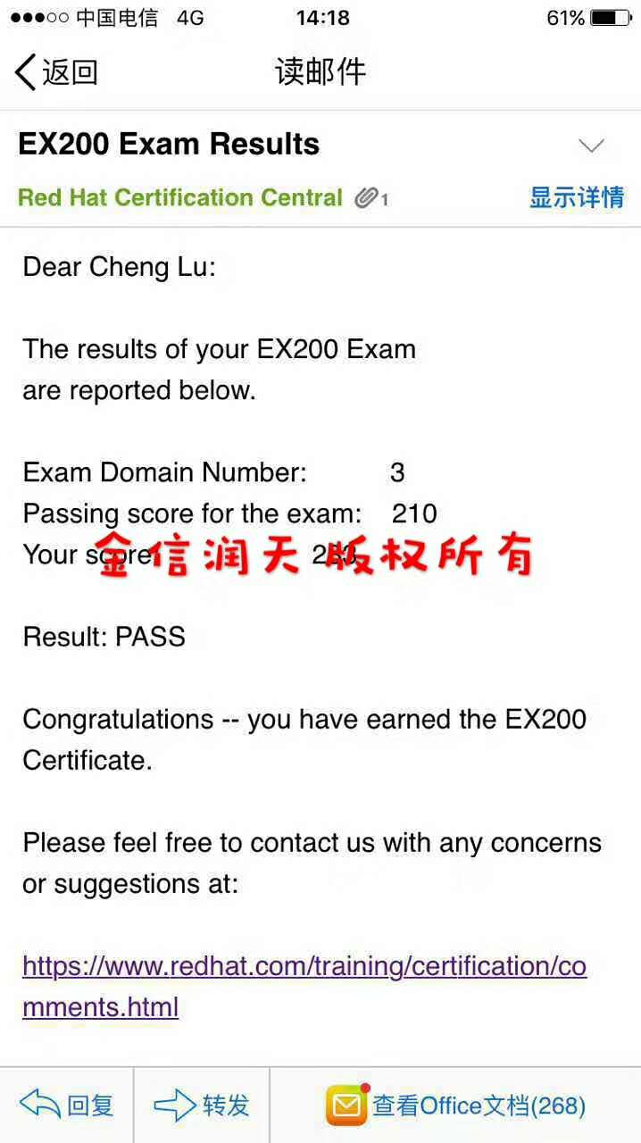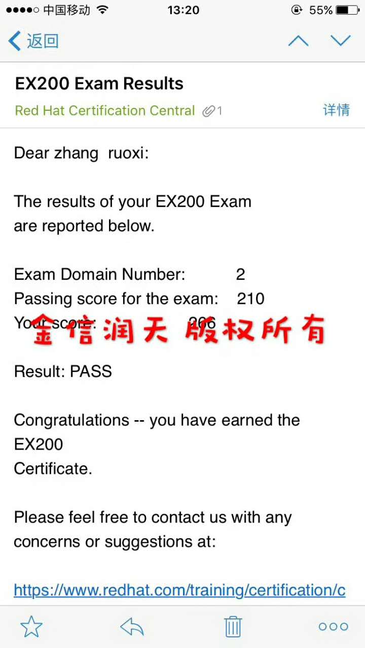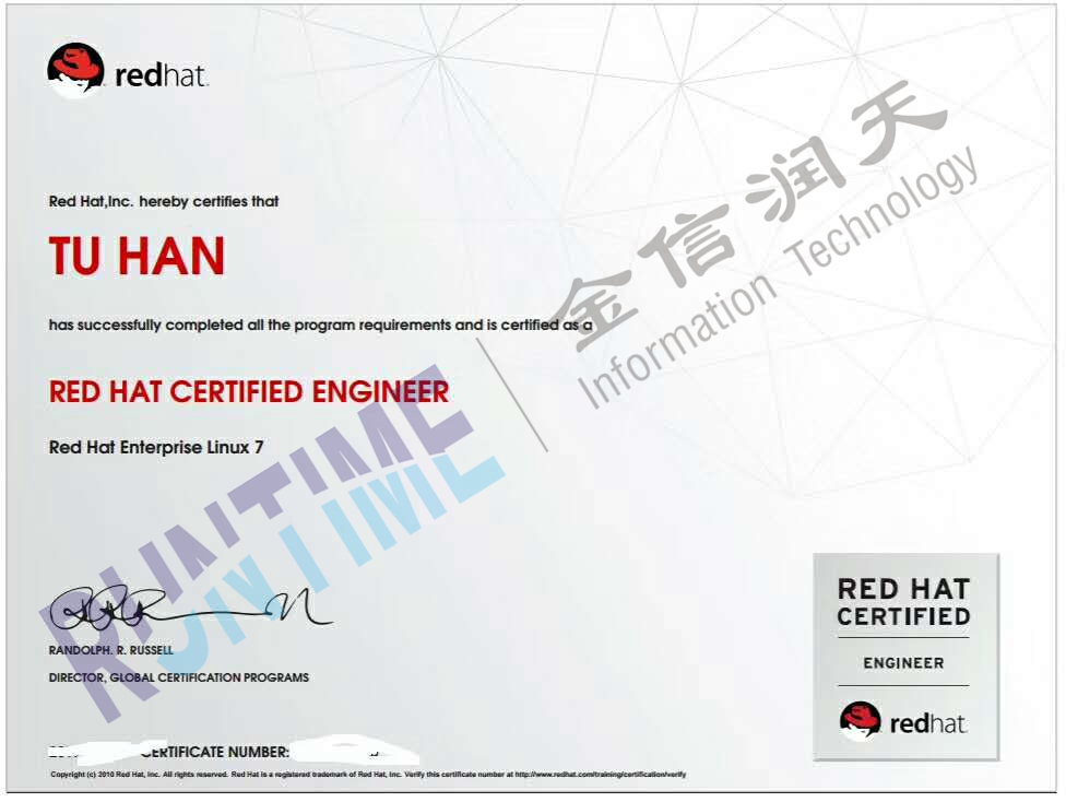 金信润天第一批RHCSA和RHCE通过学员成绩单