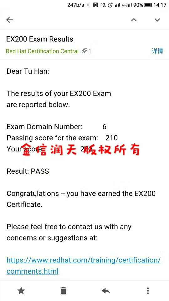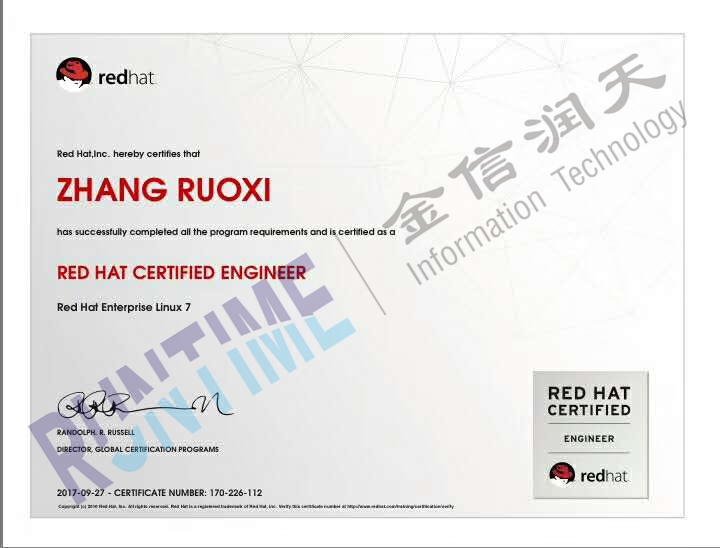 2017金信润天取得历史性突破新篇章!首批RHCSA和RHCE通过学员火热出炉