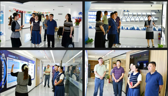 在沈威总监等人的陪同下,谢书记一行参观了润天教育实训中心。通过讲解老师的详细介绍,来访领导对公司规模、业务范围与师资力量等方面有了更加直观和深入的了解。作为新一代信息技术产教融合的领先企业,金信润天凭借其先进的技术设备、专业师资以及丰富项目经验,给领导们留下了深刻印象。