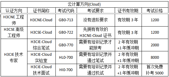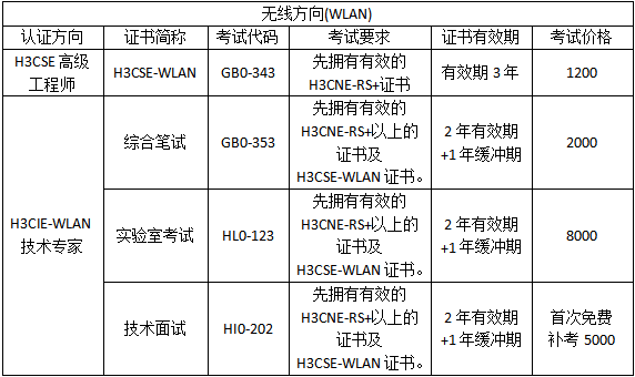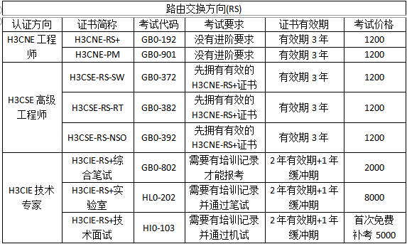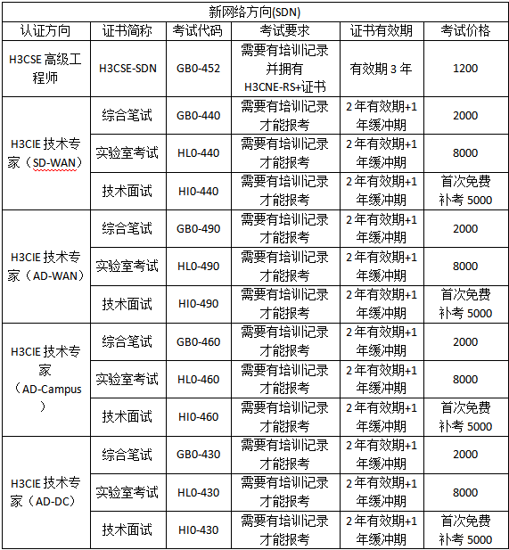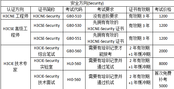 5.证书有效期:H3CNE和H3CSE的初中级别证书有效期都是3年,H3CIE级别的证书有效期都是2年,以及1年的缓冲期。