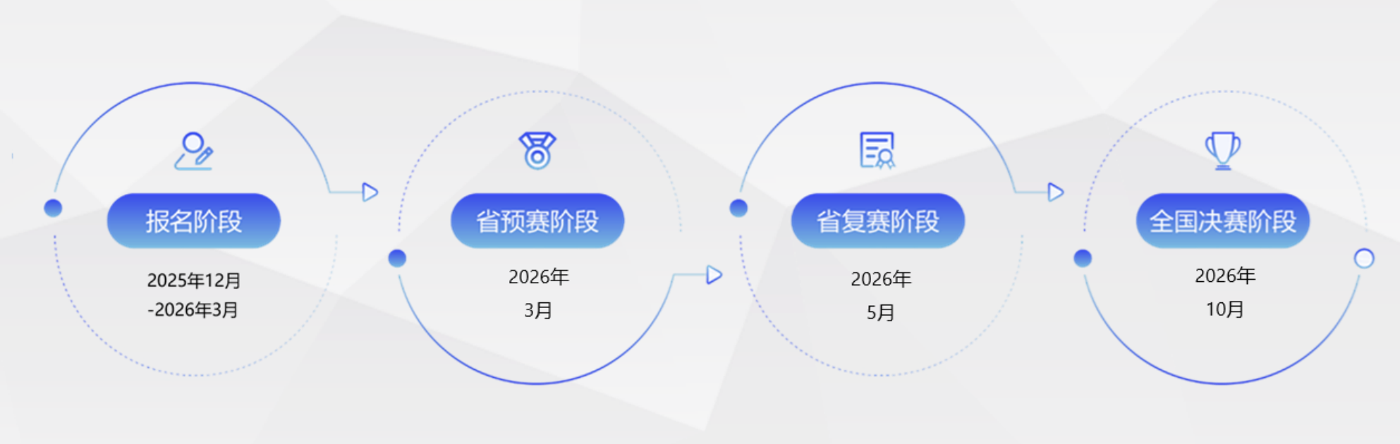 比赛时间:初赛暂定于2026年3月,复赛暂定于2026年5月,决赛暂定于2026年10月。具体时间、地点将时间另行通知,详情以官方信息为准。