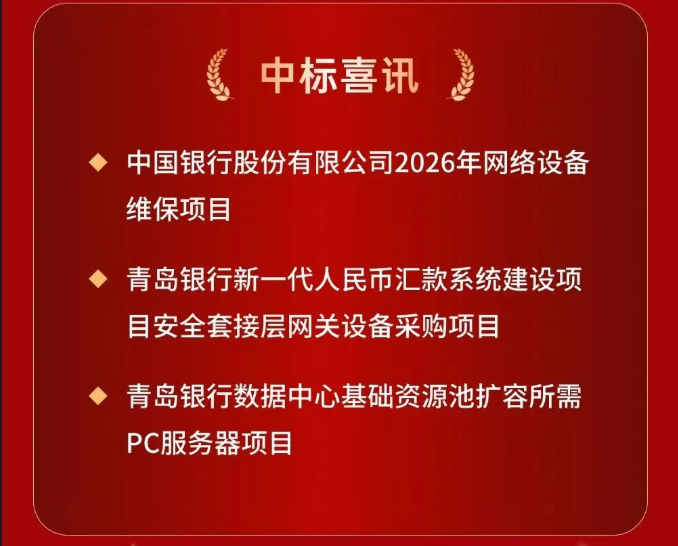 近日,金信润天在金融科技领域再传捷报,连续中标青岛银行、中国银行的一系列关键设备维保服务和建设项目。