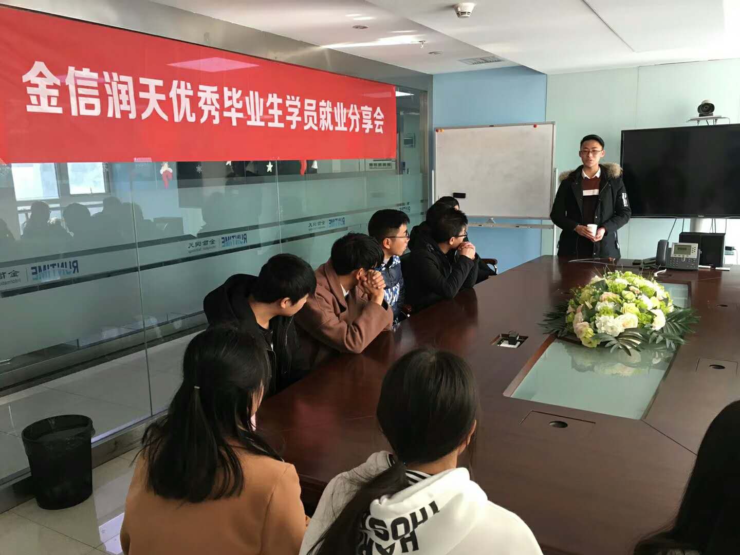 金信润天举办第九期优秀毕业生学员就业分享会,本次邀请到现就职于绿盟科技的刘国亮学长,宇视科技的张卫健学长,还有新华三的项鑫学长,三位毕业生给2016级武汉航海学院学弟学妹们分享了学习经验,面试心得以及工作经历和体会
