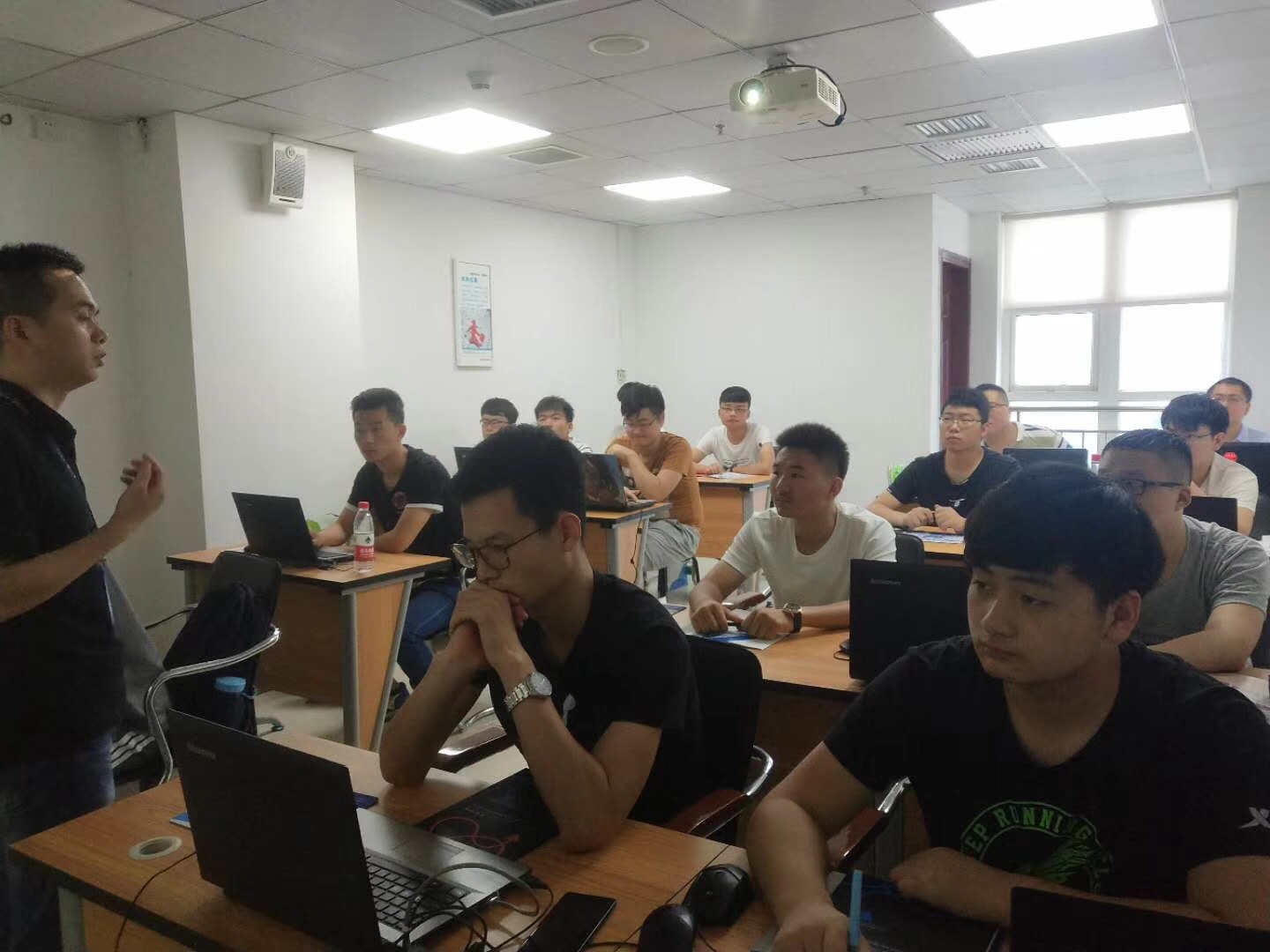 第五教室咱们的数通&Windows&Linux集训班(金信润天第115期)也是满员火爆开班,由教学主管“夏哥”夏老师亲临授课