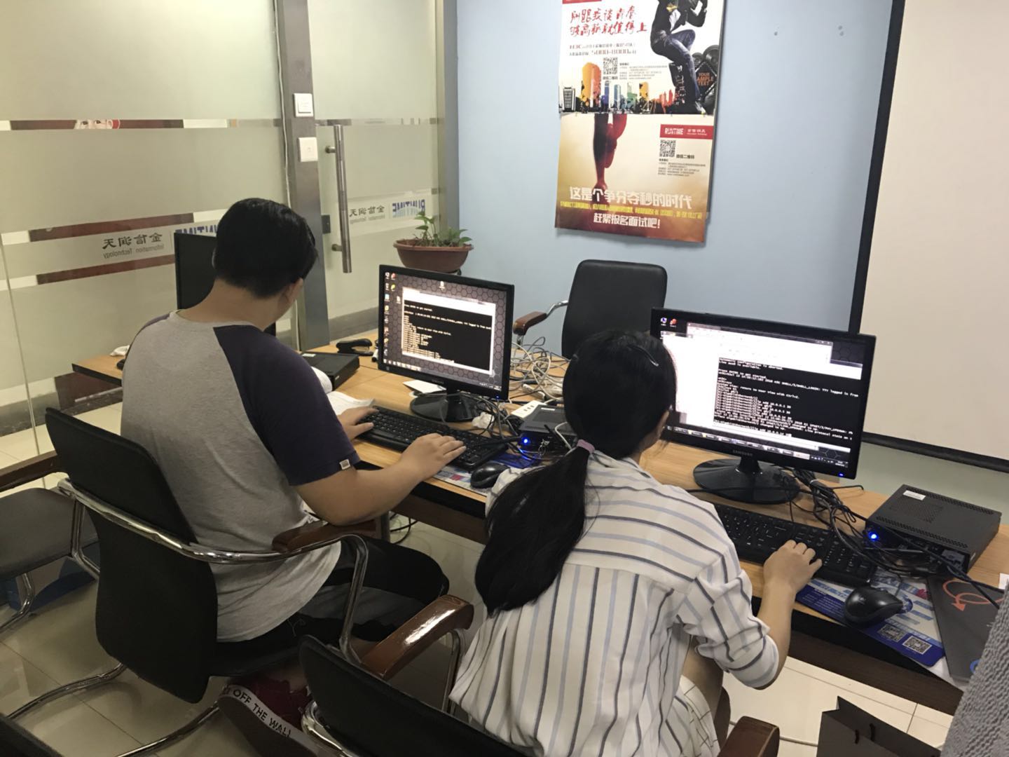 2018金信润天暑期IT精英集训营真机大赛,同学们展现自我,尽情发挥着所学之长,应对比赛中出现的难题