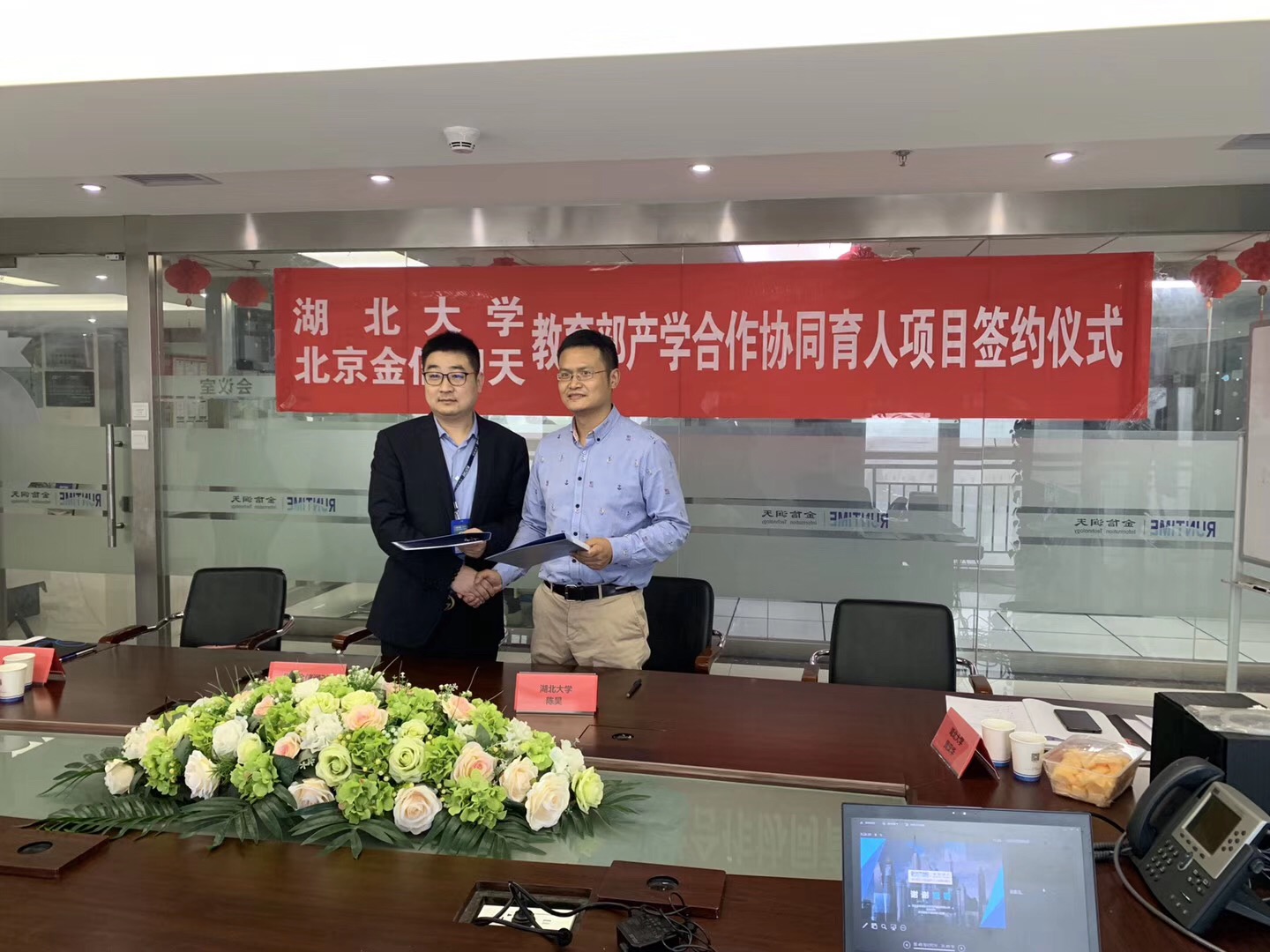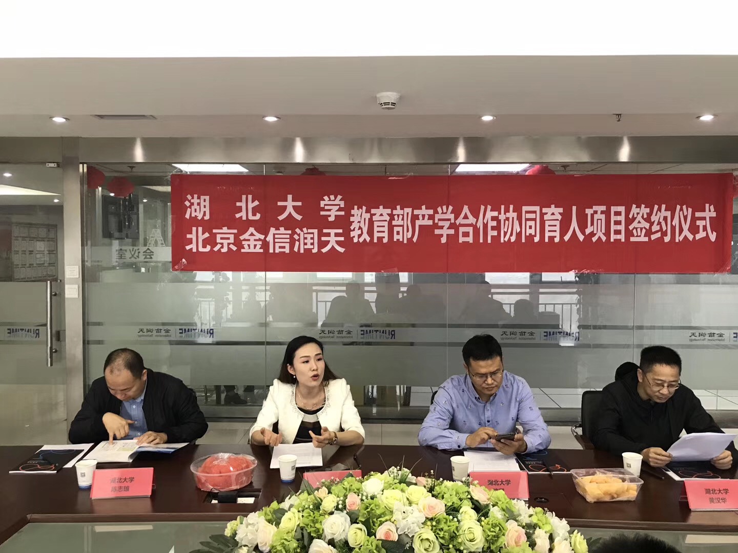 热烈祝贺湖北大学计算机与信息工程学院与北京金信润天信息技术股份有限公司于5月16日(周四)签订教育部产学合作协同育人项目协议,正式开启应用型本科校企合作之路