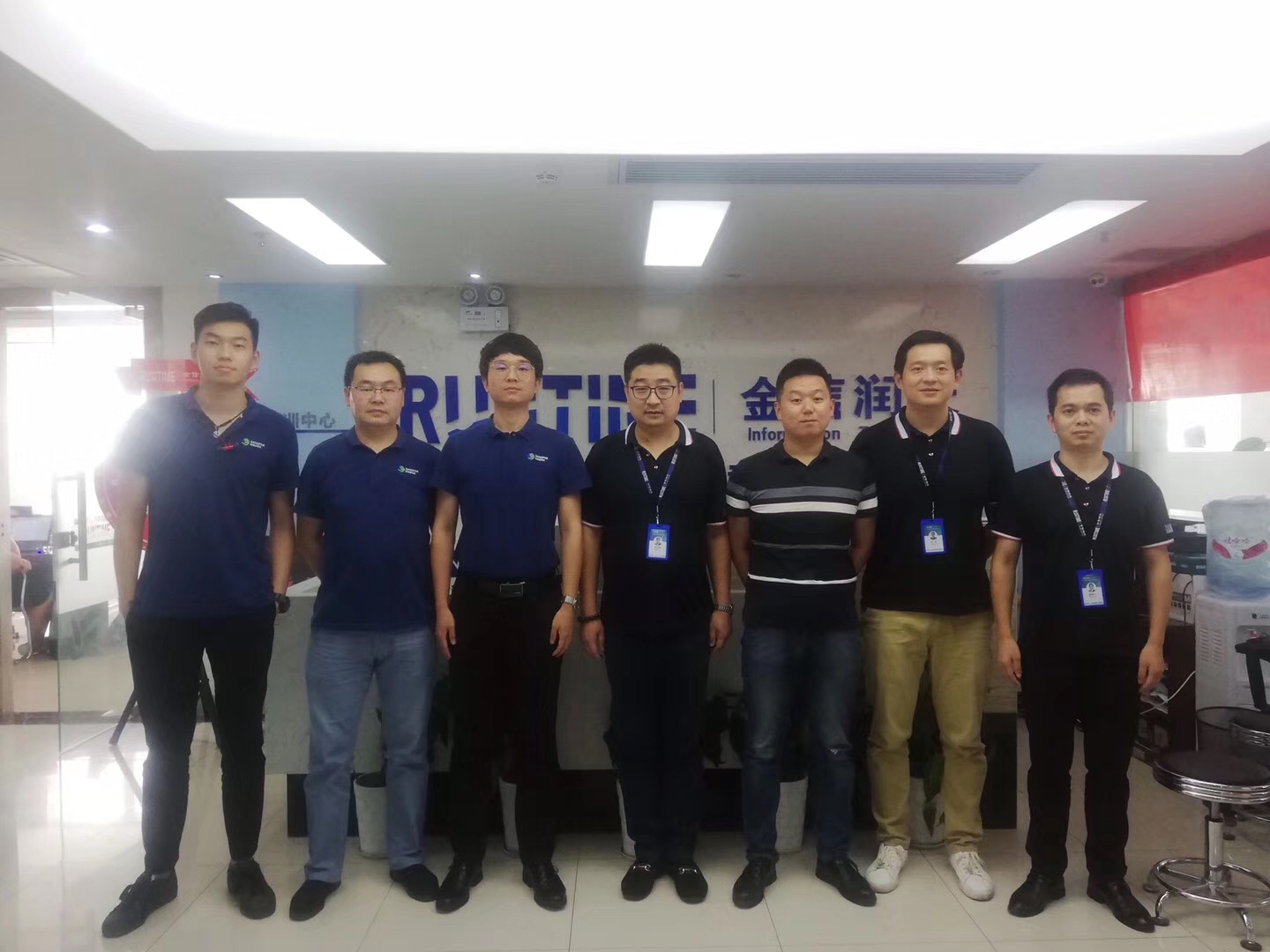 2019.8.20,深信服培训认证部王庚、湖北办事处徐增、王中莹等一行四人来金信润天武汉分公司参观考察指导工作。就深信服技术认证和校企合作专业共建两大块业务上展开了深度探讨与交流,双方都期望未来有进一步更深入的业务合作。