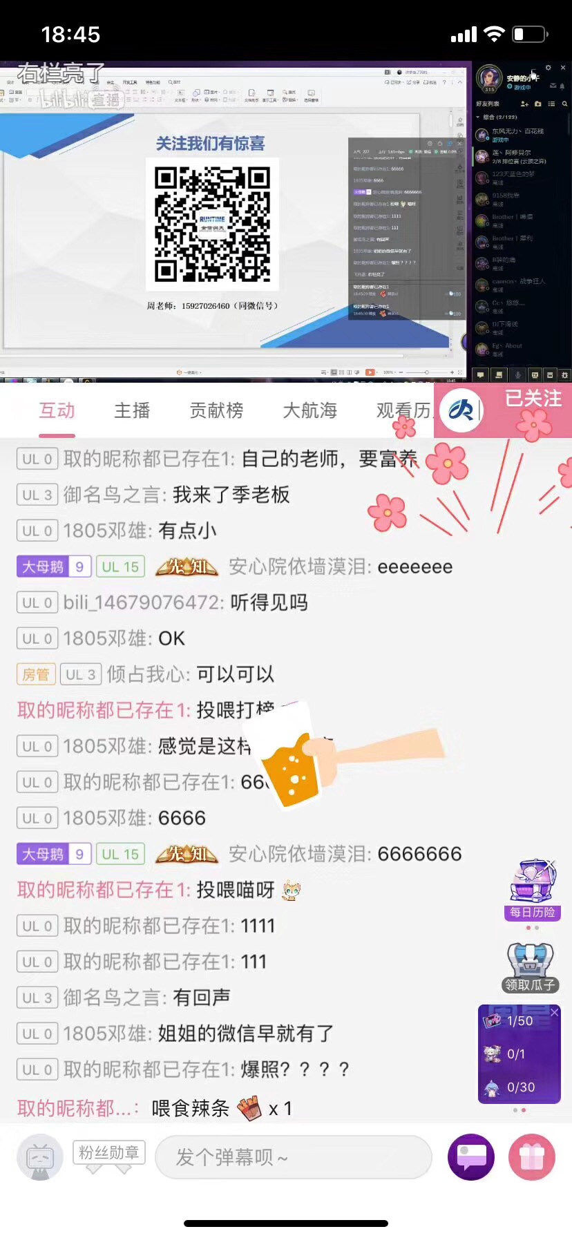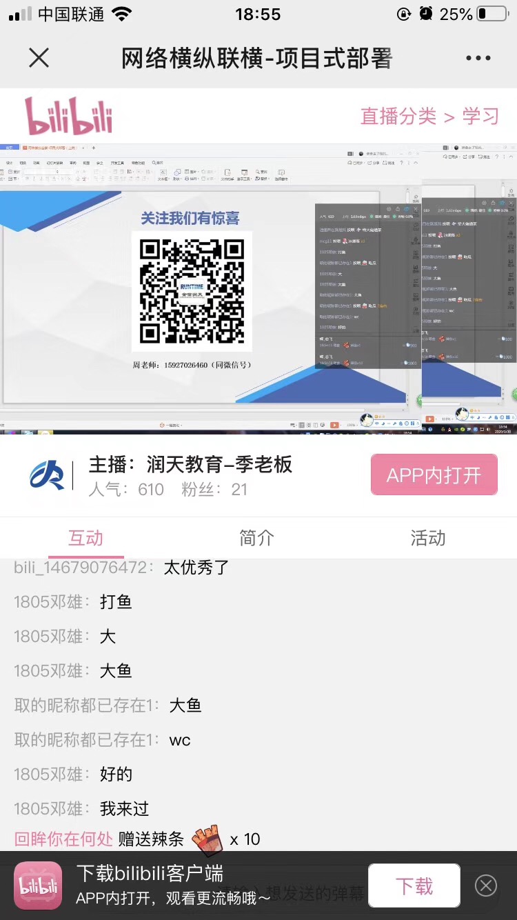 #润天教育#3月30日晚七点,哔哩哔哩大型主题公开课《横纵连横—项目式部署》开始不一会就人数高达2000+了,和大家玩得小游戏听歌识曲我怀疑都是KTV麦霸,一听一个准,超厉害。